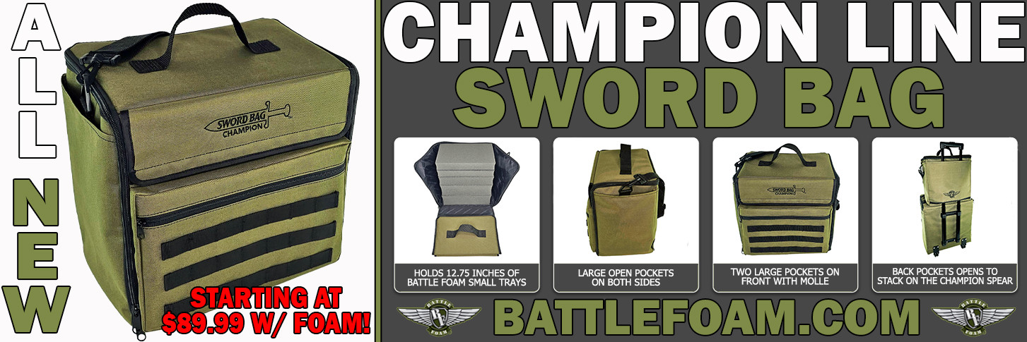 $94.99The Champion Sword Bag is built for gamers who need dependable storage at a great price. Crafted from durable olive-green canvas, this bag keeps your miniatures, rulebooks, and gaming accessories...BF-CHSW-SL -